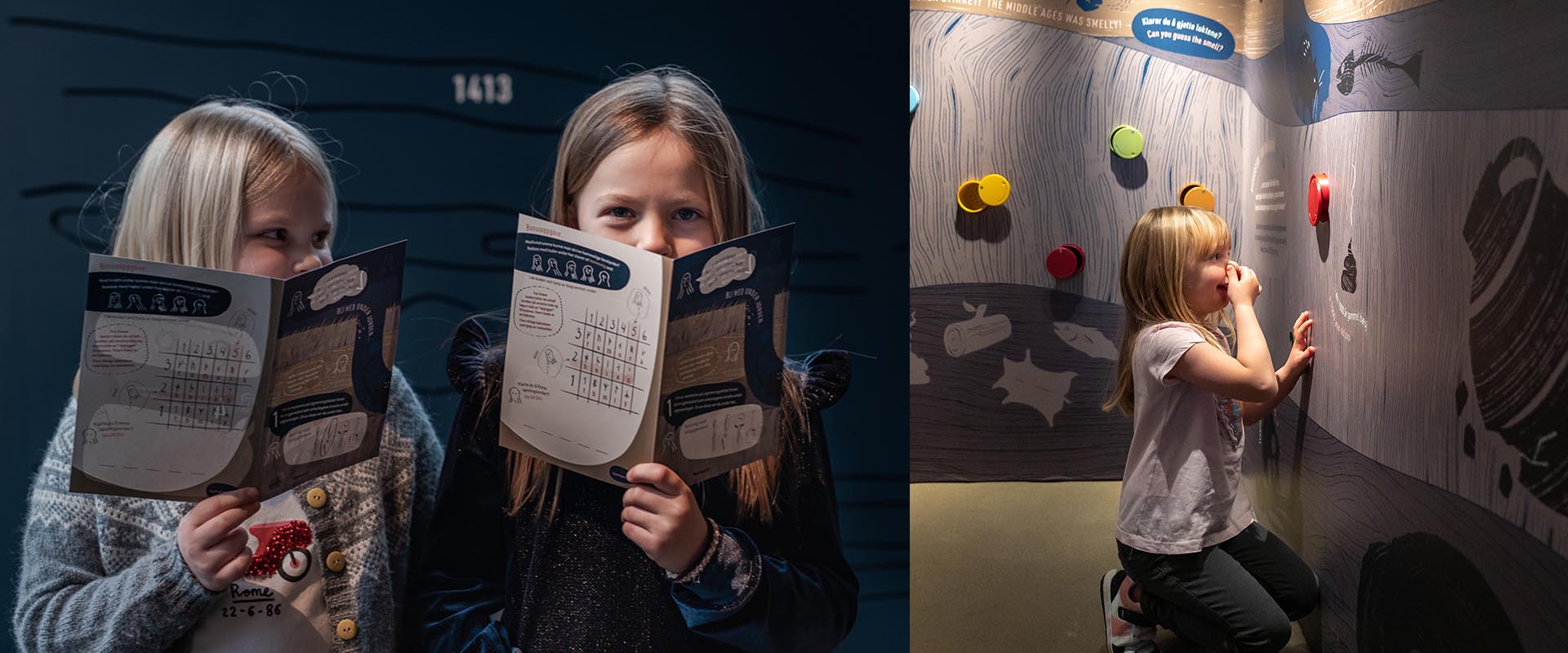 Hos oss kan barn og familier utforske museene våre på en aktiv og morsom måte. Ta med dere et aktivitetshefte og legg ut på oppdagelsesferd i utstillingene og de spennende byggene våre – løs oppgaver, finn skjulte detaljer og lær nye ting underveis.