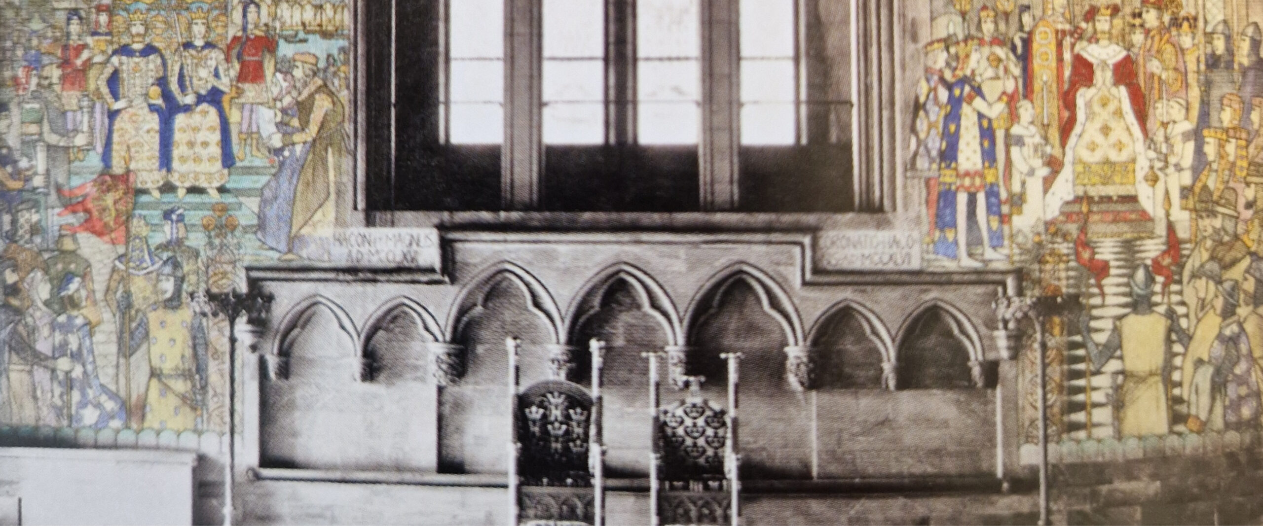 Håkonshallen ble restaurert i årene 1889 – 1895, men var med sitt enkle interiør lite egnet til festlige sammenkomster. Forslag om utsmykking ï form av glassmalerier ble lansert i 1901, og året etter ble kunstneren Gerhard Munthe bedt om å utarbeide et forslag til dette.